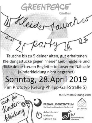 Die Kleidertauschparty wird veranstaltet von Greenpeace Gießen und durchgeführt mit Unterstützung der ALI, der Jugendwerkstatt, des Freiwilligenzentrums und des Prototyps.