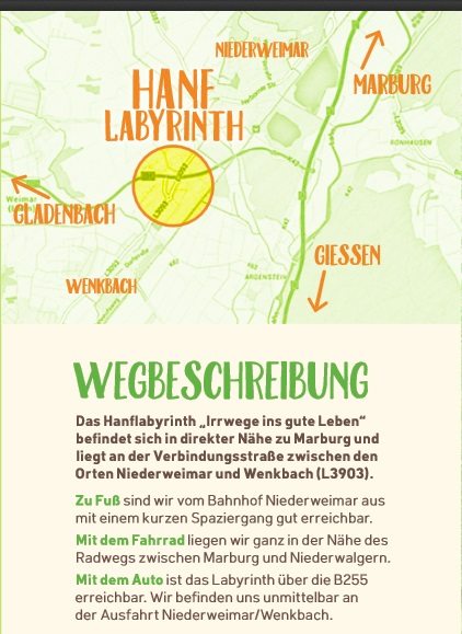 Sofern das Wetter mitspielt wollen wir ab ca. 10:00 Uhr von hier aus starten. Sollte jedoch das Wetter regnerisch und gänzlich ungemütlich sein, müssen wir hier alternativ über das Thema Hanf diskutieren. Aber geplant sei: ab 10:00 Uhr losfahren, wir können ca. 12-15 Personen mit PKW's befördern. Es muss sich jede(r) bis zum 18.09.2015 in die aushängenden Listen eingetragen haben, damit wir planen können. Der Gang durch das Labyrinth dauert ca. 2,5 Stunden und wir werden unseren Gang filmisch begleiten. Weitere Infos zum Feld selbst und deren Stationen entnehmt bitte den jeweiligen Webseiten.